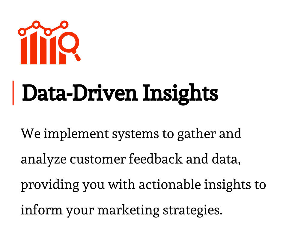 We provide the tools, research and expertise to gain deep insights into your customer base. We'll use data analytics to identify trends, patterns, and insights that can inform your marketing strategies.